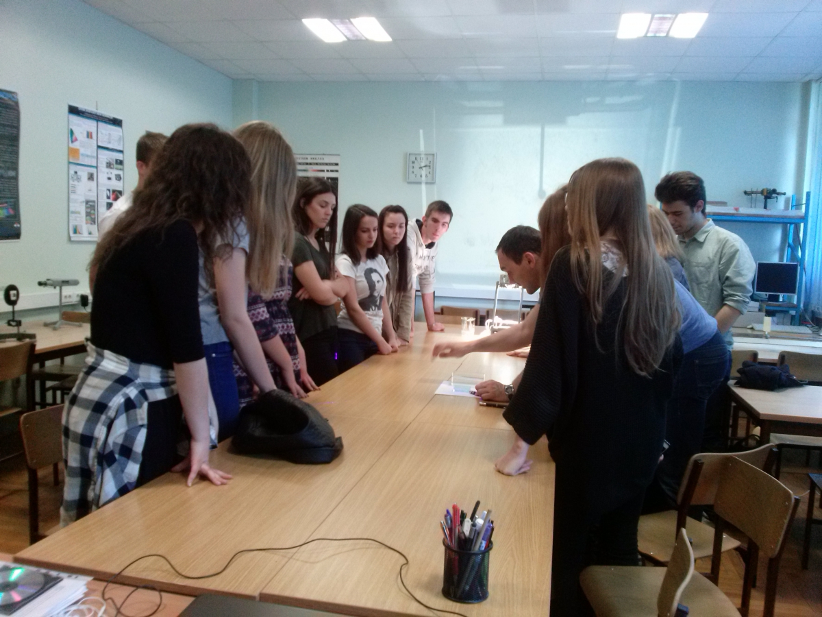 U sklopu Dana otovorenih vrata Fakulteta, 19. svibnja 2016. godine, u posjet laboratoriju za fiziku došli su srednjoškolci iz Osijeka, Osječko-baranjske županije i učenici iz BiH.